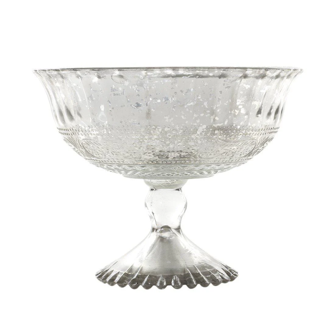 Our stunning mercury glass compote bowls are the perfect detail to add classic old school glamour to your special day. Made of shimmering mercury glass for a vintage look, fill these pedestal bowls with roses, hydrangeas, or pastel florals to create a fabulous antique centerpiece display.
