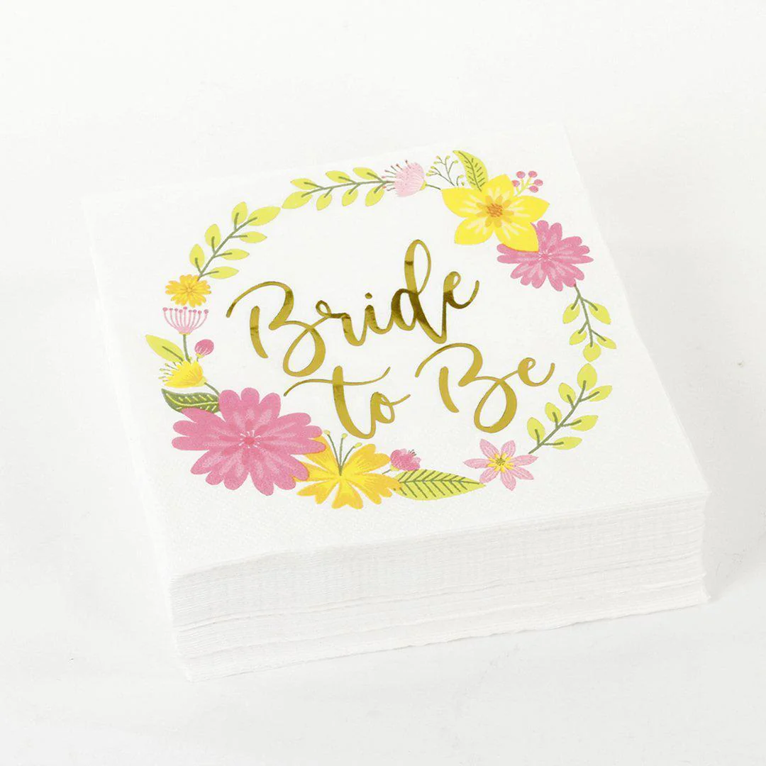 - Includes: 50 paper napkin white with gold foil print Bride To Be and floral designed by Andaz Press