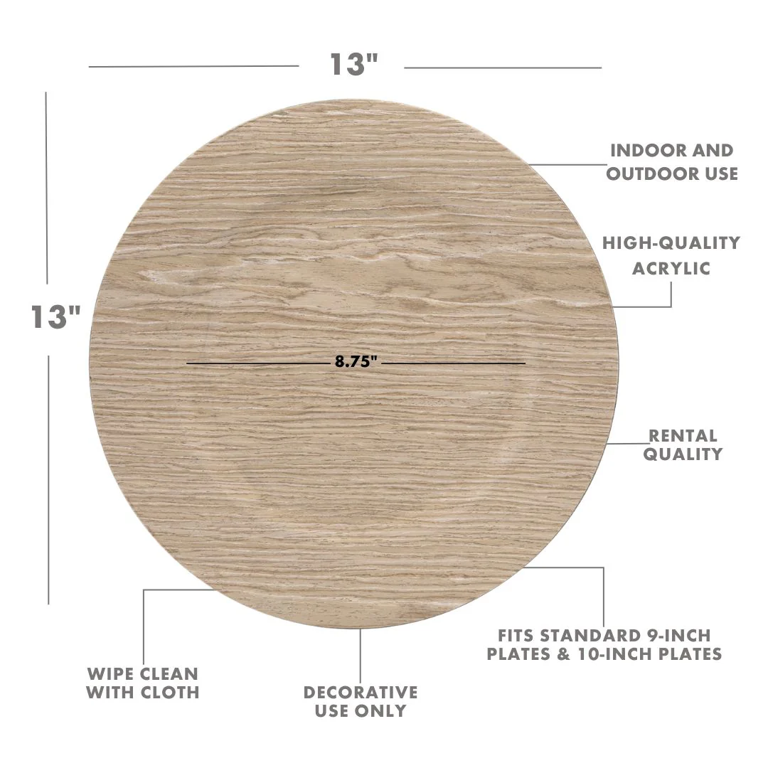 - Includes 4 high quality faux wood charger plates, featuring realistic walnut surface texture