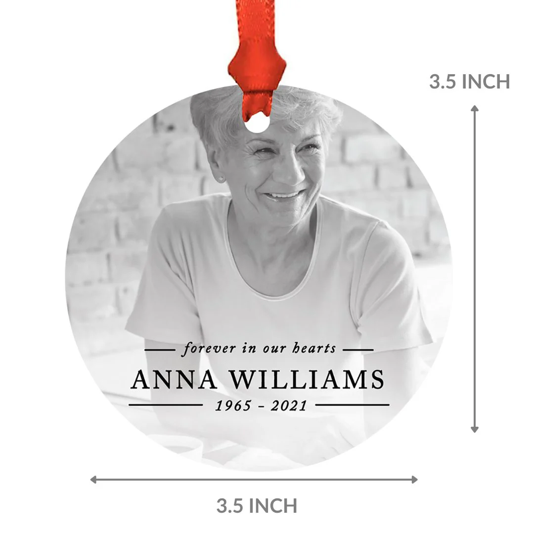 - METAL QUALITY MATERIAL each photo personalized ornament is made from high-quality metal with a pre-cut hole. Hang these round metal ornaments on your tree every year or give them as memory gifts for loss loved ones.