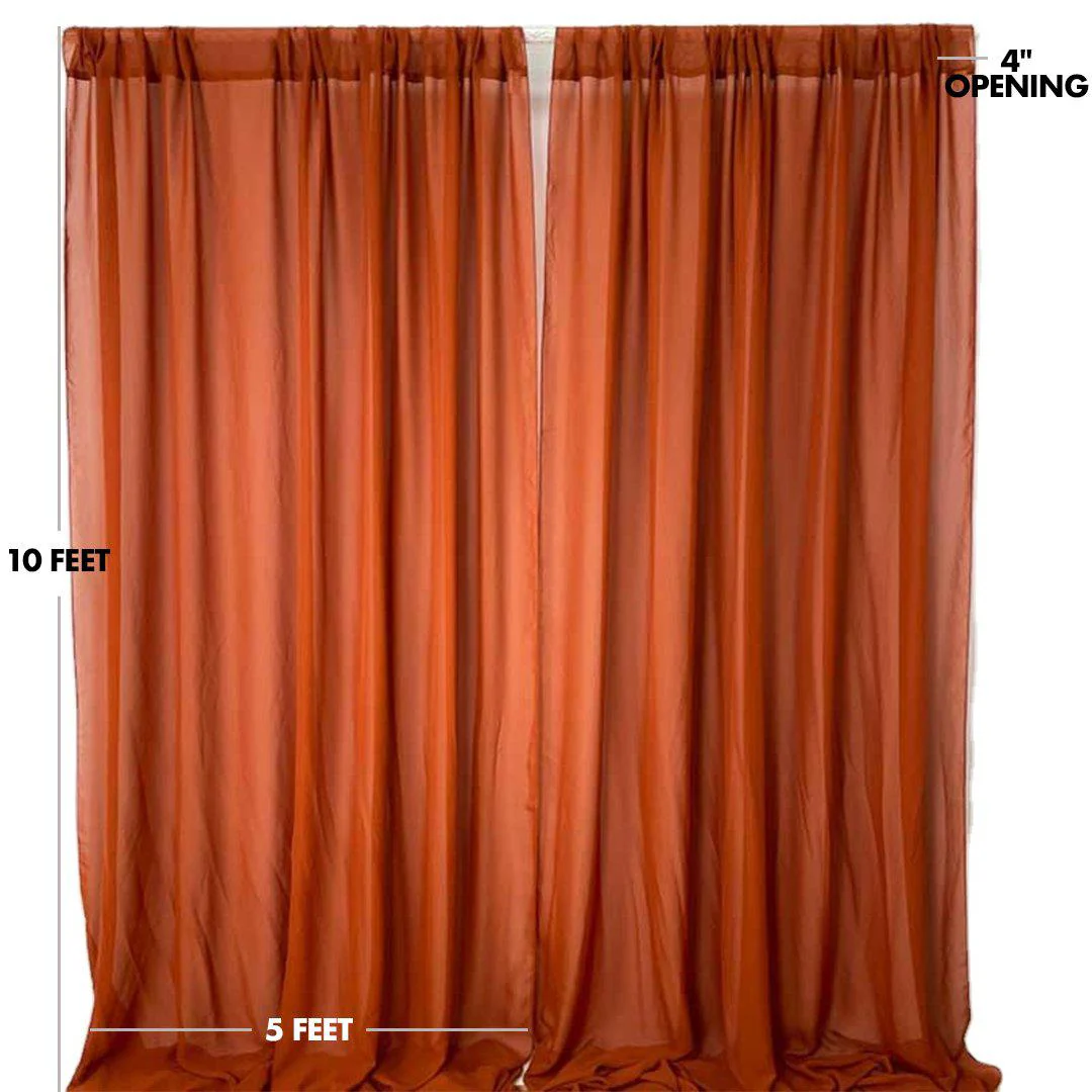 - Parties & More: Draping chiffon throughout your event takes the event design to the next level. Chiffon drape panels are the trend for wedding backdrops. These 5 ft x 10 ft curtains are used for more than wedding receptions. Use chiffon drapes for the backdrop at bridal showers, birthday celebrations, baby showers, and any celebratory event. With 14 different colors to select from, these chiffon curtains will complement all types of decorations. Event planners order in bulk to drape chiffon at every party.