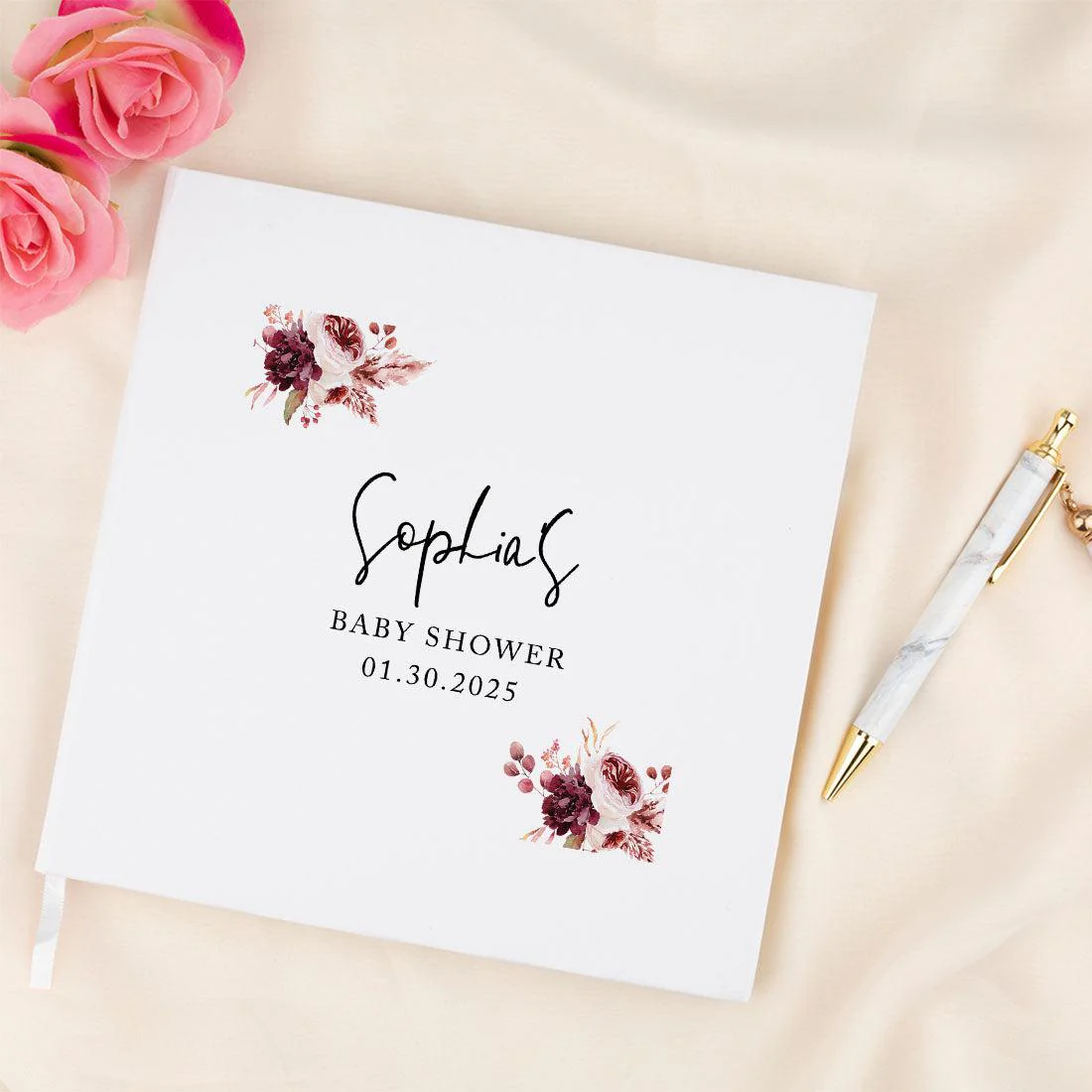 - PERSONALIZED GUESTBOOK: Always remember your special day with this personalized guestbook. Order a custom guestbook for any event-from baby showers, gender reveals, and Quinceaneras to housewarmings, just to name a few. Select a wide range of themes to match and add the event name, date, and location so you can look back on your memories fondly. Each book includes 10 sheets of 24 white corners to further personalize your guestbook for any event.