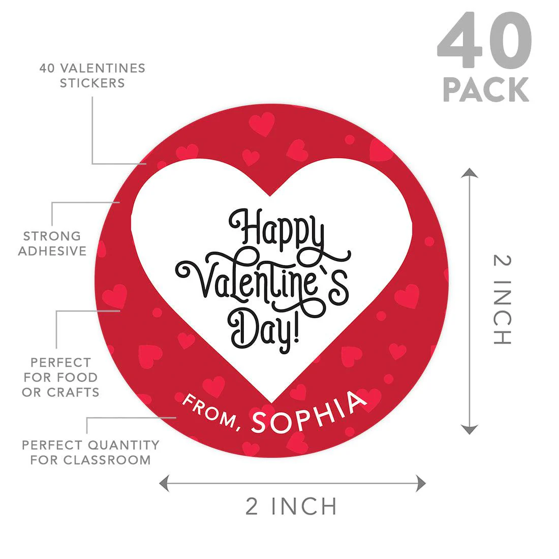 Custom Kids Valentine's Stickers | 2" Circle Happy Valentine's Day Labels for Gift & Craft, Set of 40