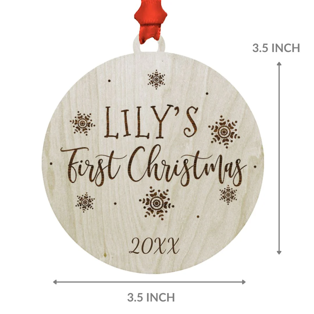 Custom Name Laser Engraved Wood Christmas Ornament Bulk Pack, Baby's First Christmas, Elegant Snowflakes