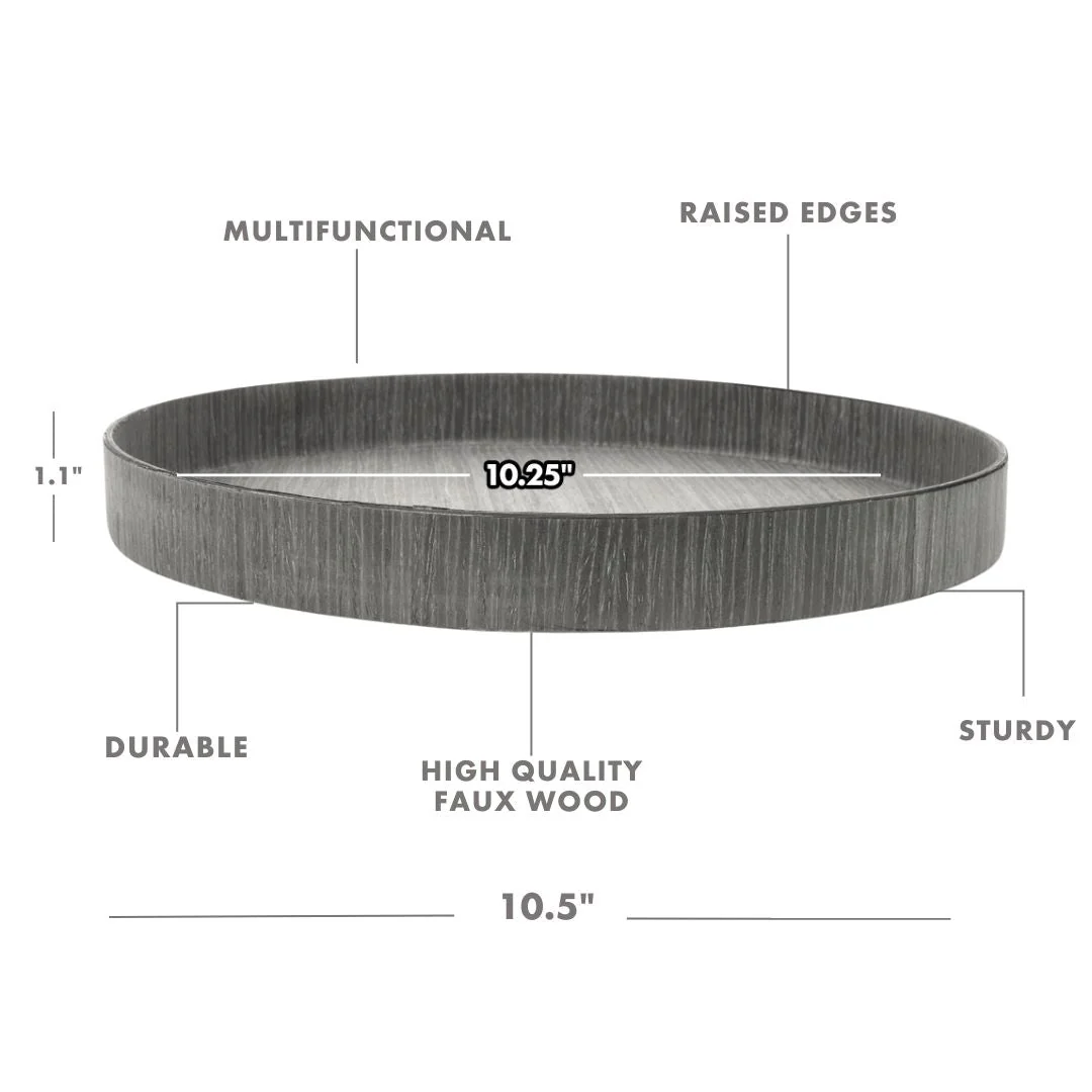 Faux Wood Round Decorative Tray Rustic Wood Tray