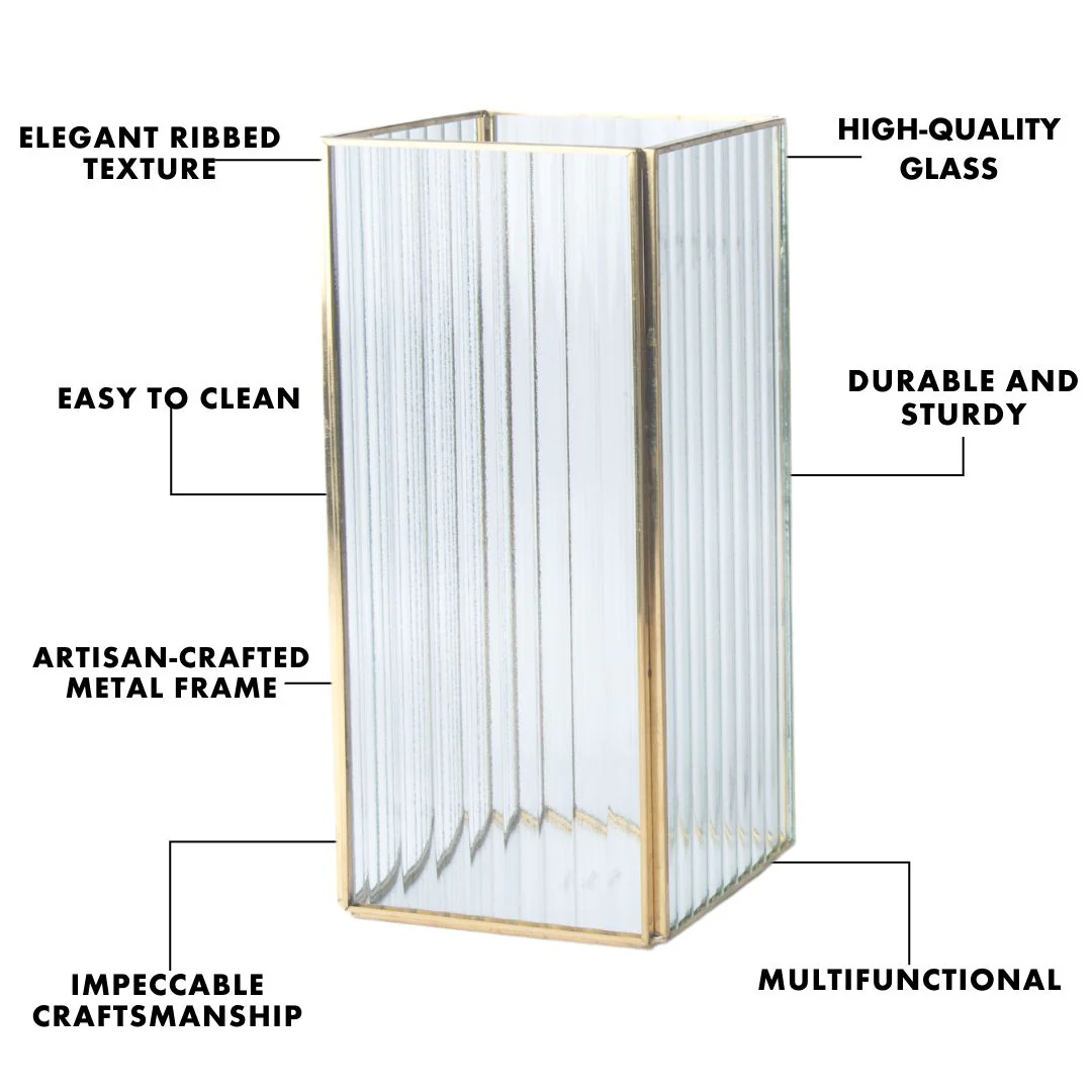 - RIBBED HURRICANE GLASS FOR EFFORTLESS BEAUTY: Using our square candle holders is as simple as placing your favorite pillar candles inside and lighting them inside this ribbed hurricane candle holder set. The ribbed hurricane vase design is reminiscent of a classic hurricane candle holder, ensuring a steady flame while adding an extra layer of elegance to your table decor.