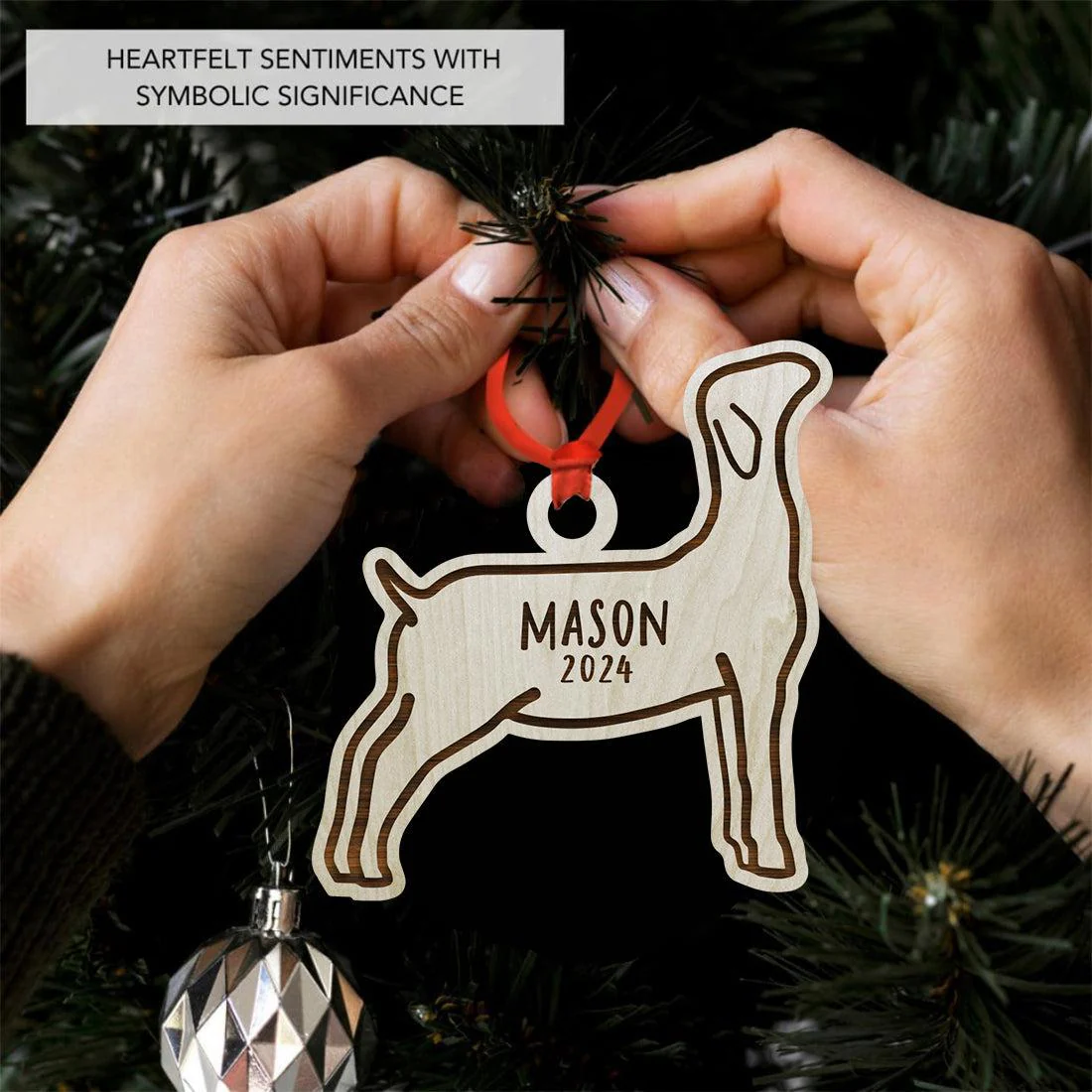 - INCLUDES A RIBBON FOR EASY HANGING making it the perfect custom Christmas ornament for any tree. Whether it’s to celebrate with a goat ornament 2024 or as part of a collection of personalized Christmas ornaments, this piece will bring holiday joy for years.