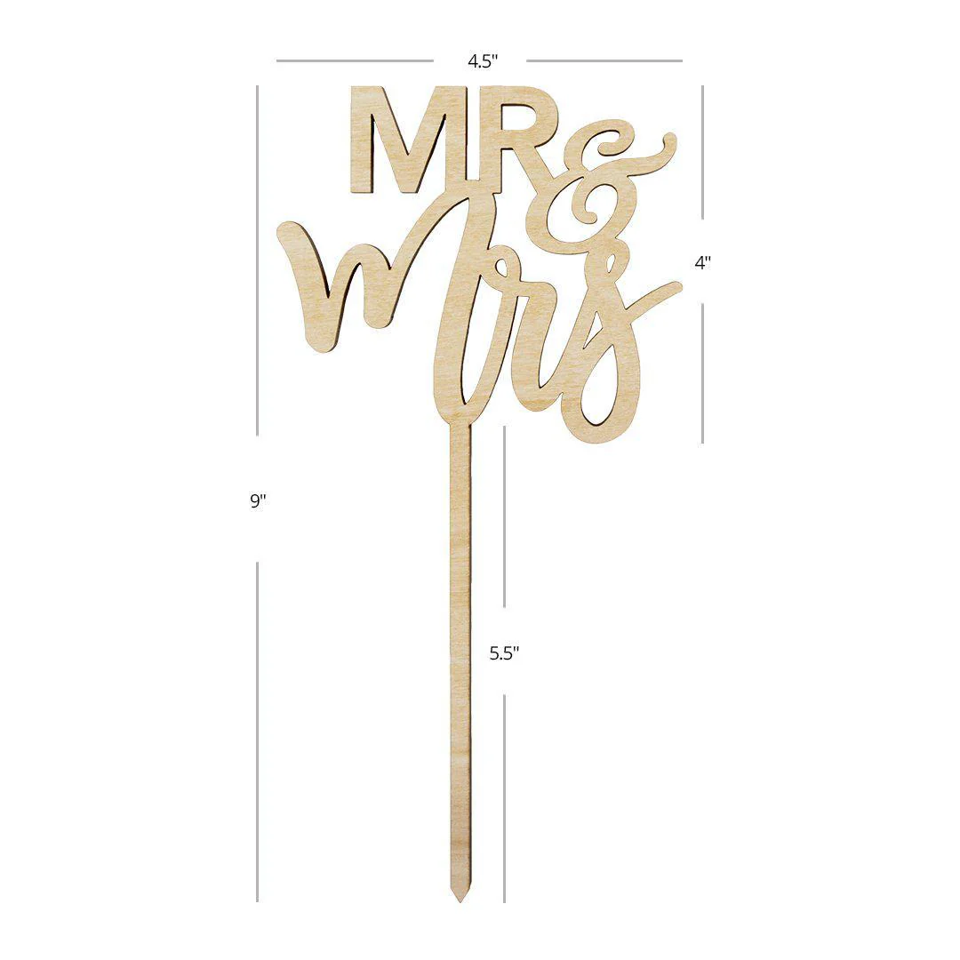 Mr and Mrs Laser Cut Wood Cake Topper