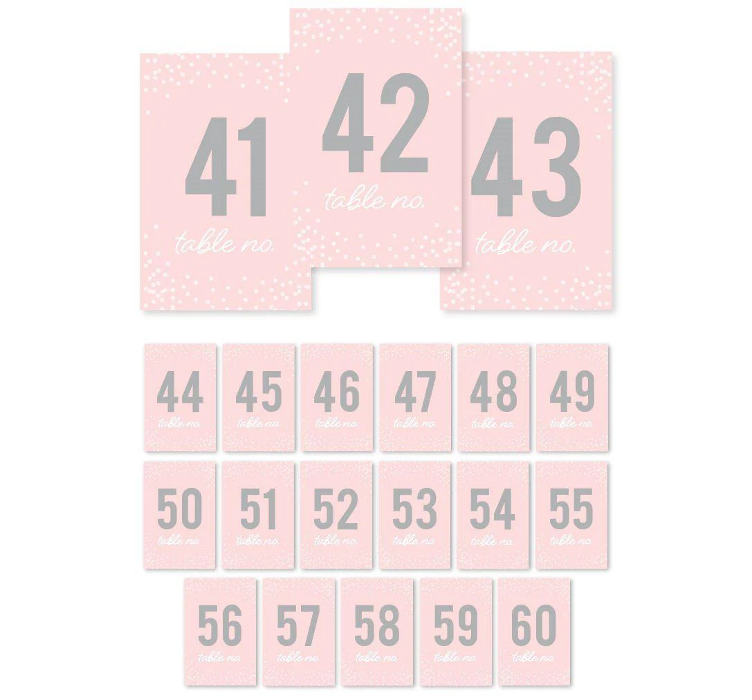 Direct your party guests to their appropriate table with our stylish and unique blush pink and gray table number designs. Forget boring black numbers on white paper, and liven up your wedding or special event with our professionally printed blush pink and gray table numbers on heavy cardstock. With bold and vibrant colors and details, our classic blush pink and gray table numbers will encourage your guests to find their seats quickly and efficiently. For the DIY party planner or bride, frame these chic blush pink and gray table numbers in your choice of frame for an added embellishment. Made in the USA.