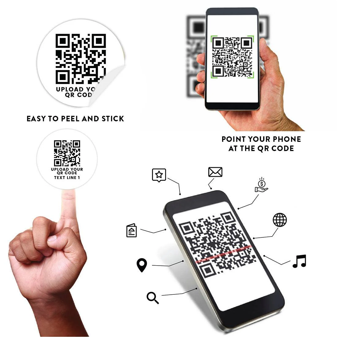 - QUICK AND EASY QR CODE STICKER SCANS: Enhance your organization and convenience with QR code labels for storage in your QR code storage system or streamline payments with a pay here sign QR code. Promote your brand with QR stickers for cars, flyers, tables, or signs with a stylish QR decal. Enhance your business and organization with a sleek QR code business card, QR code storage labels, and storage QR code labels.